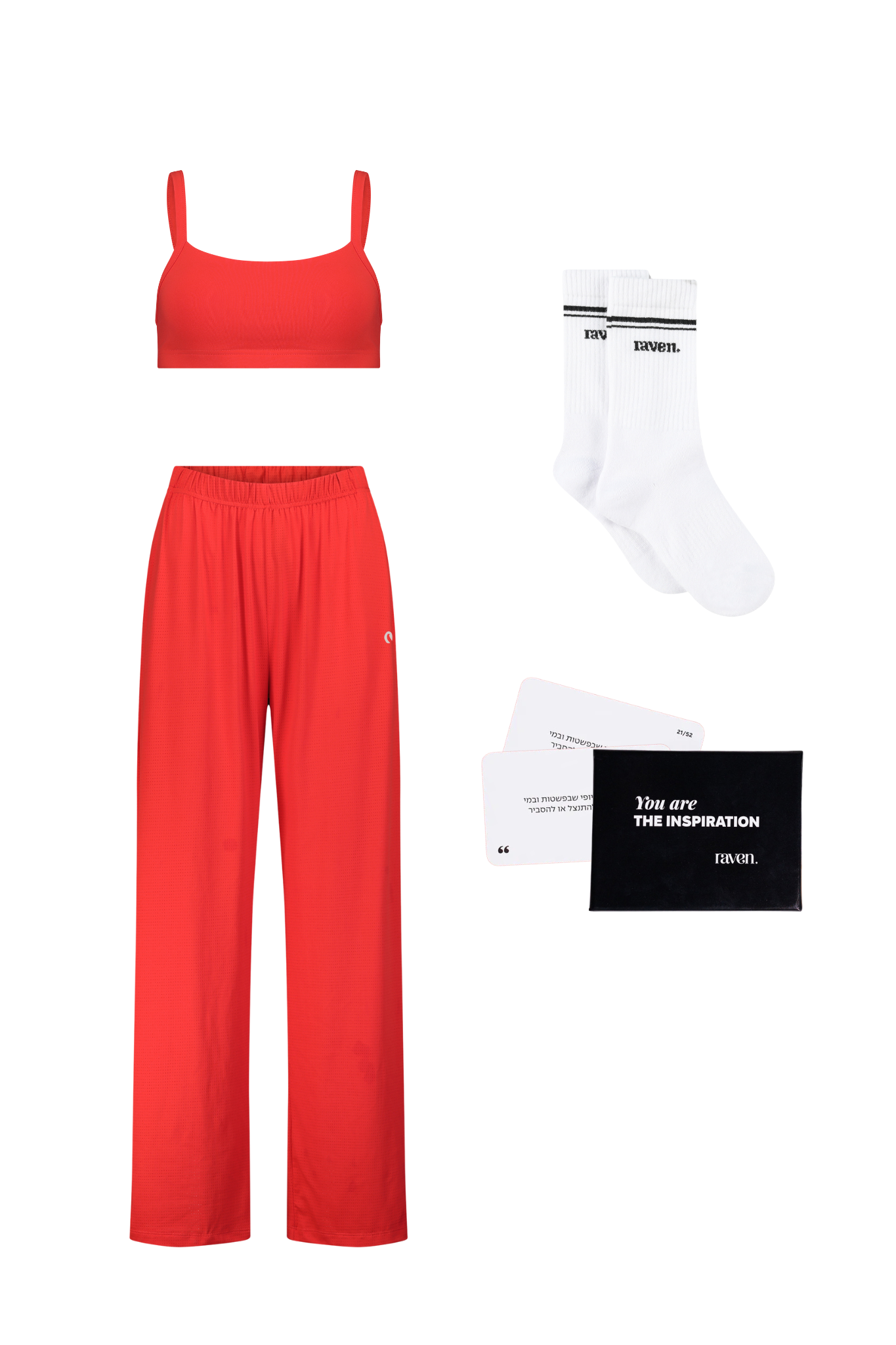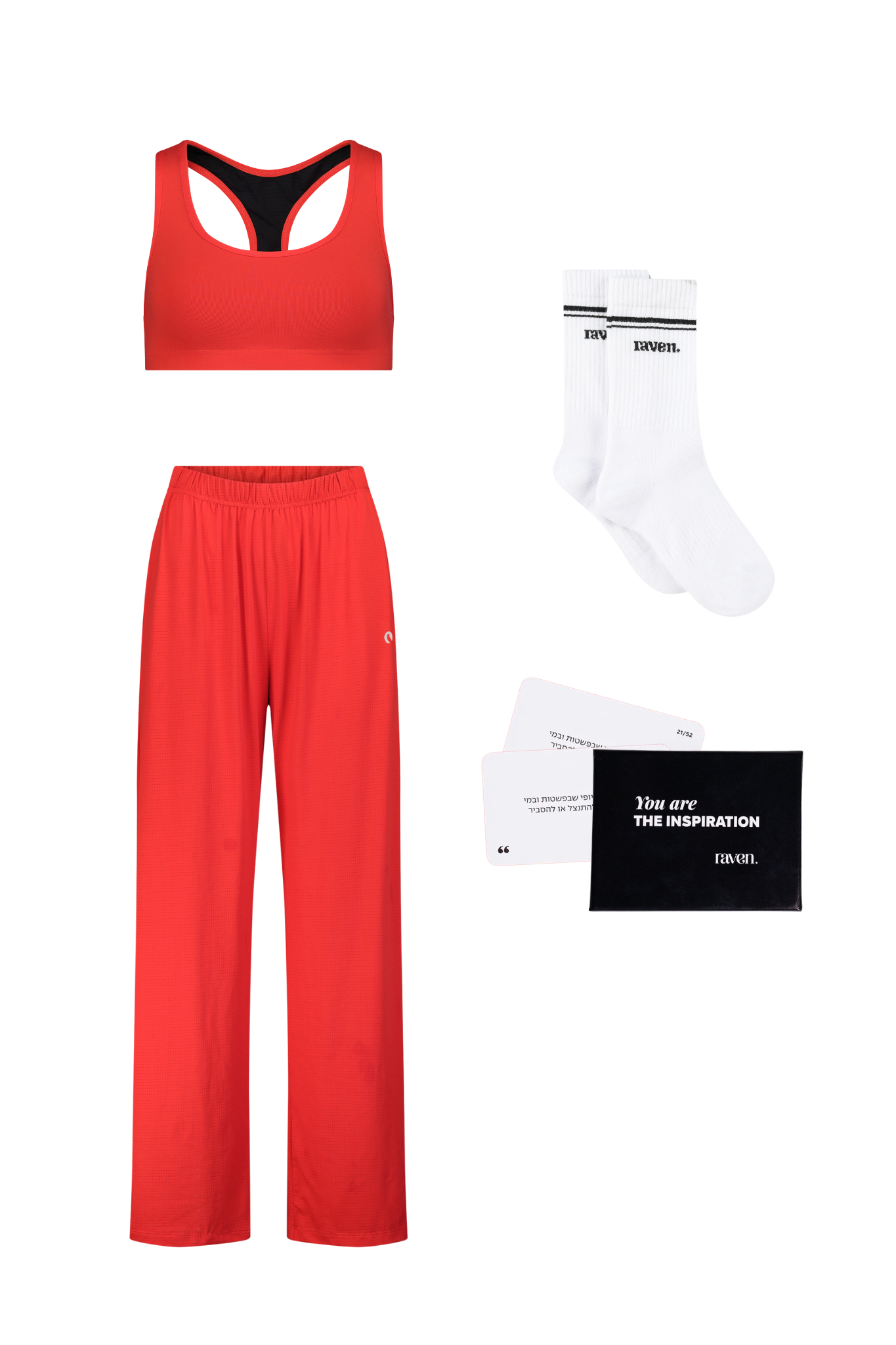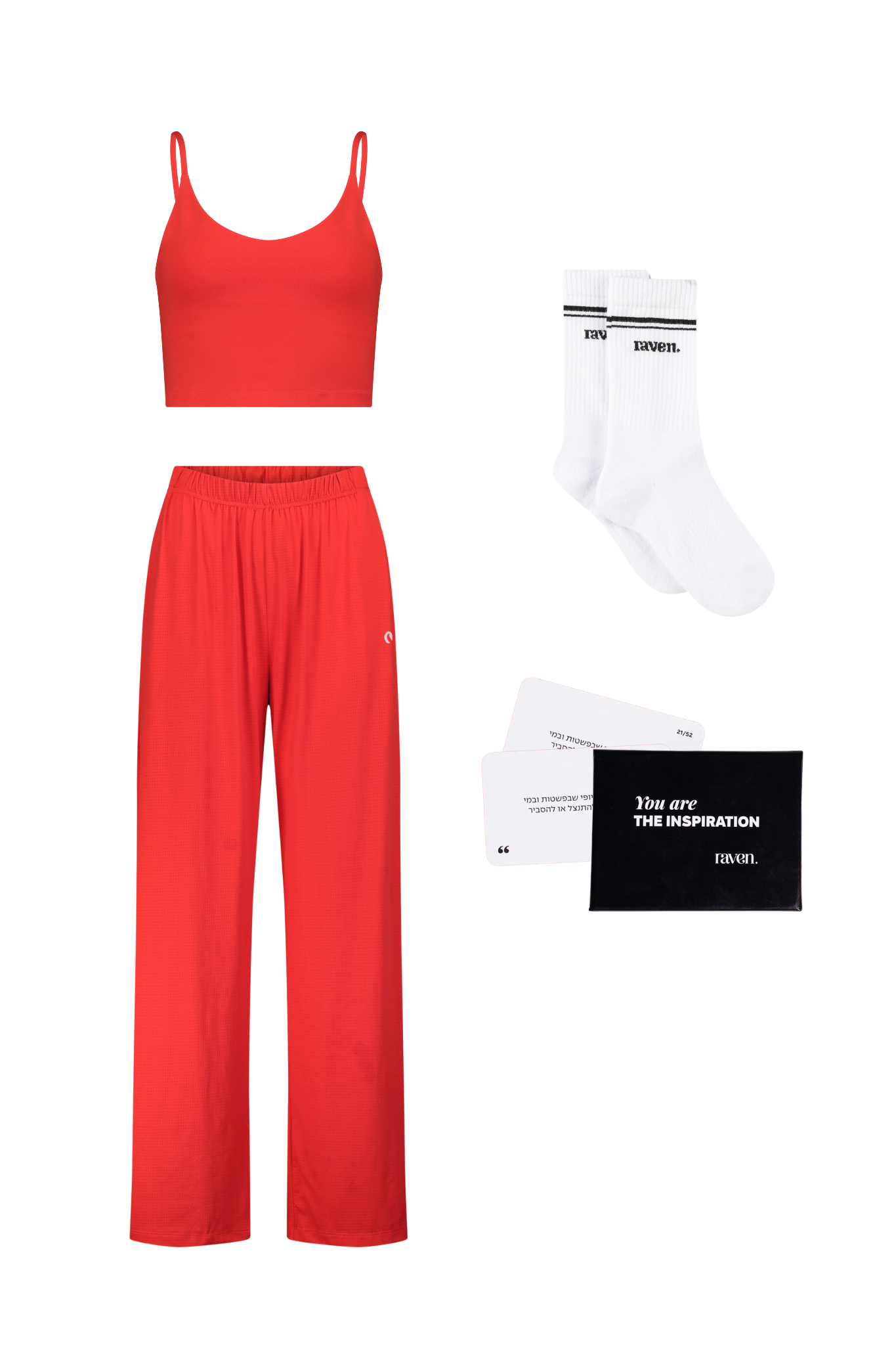 טופ גב מוצלב + מכנסיים בגזרה ישרה