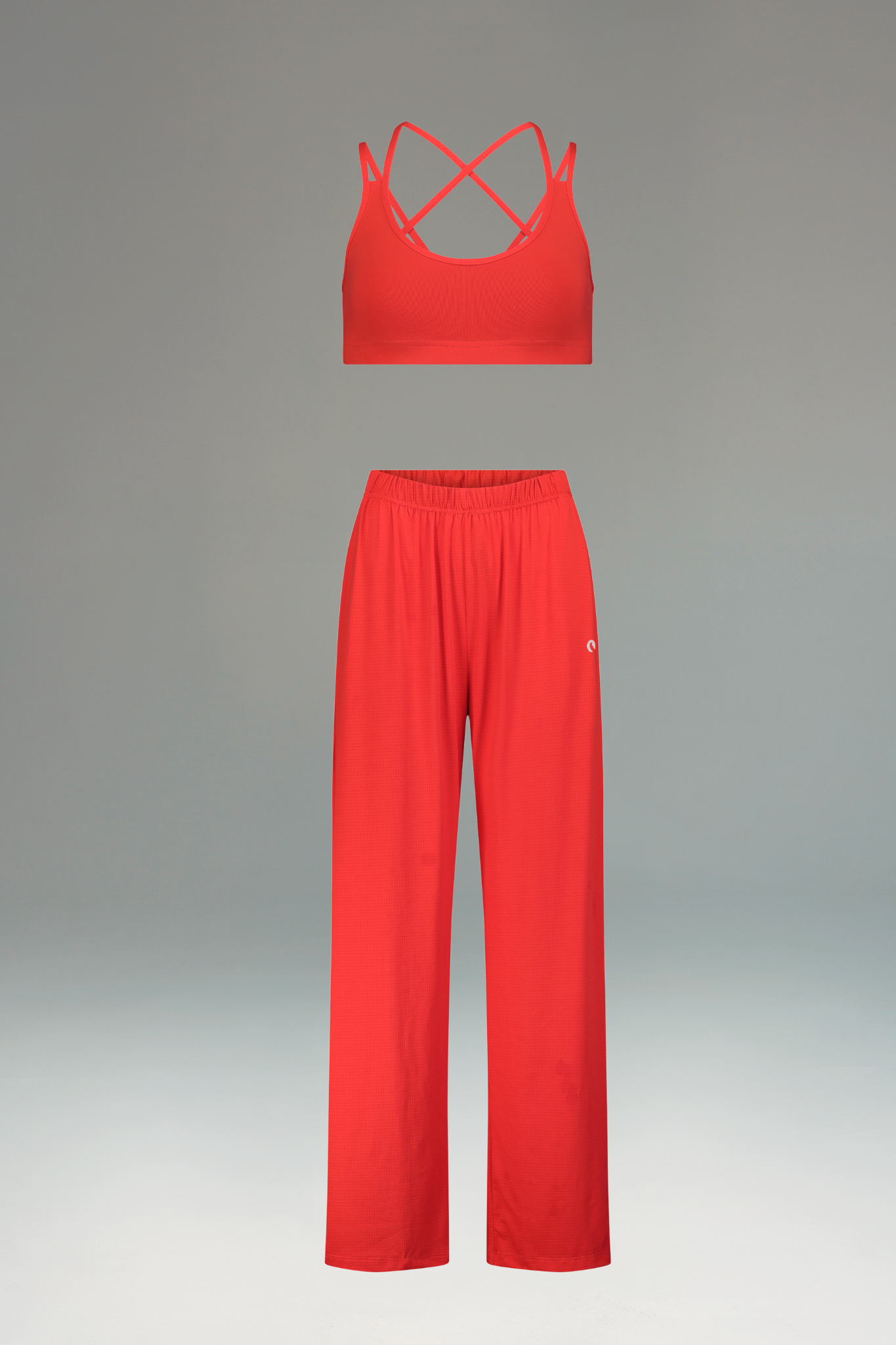 טופ SOFTLEX גב מוצלב + מכנסי YALU גזרה ישרה - HOT RED