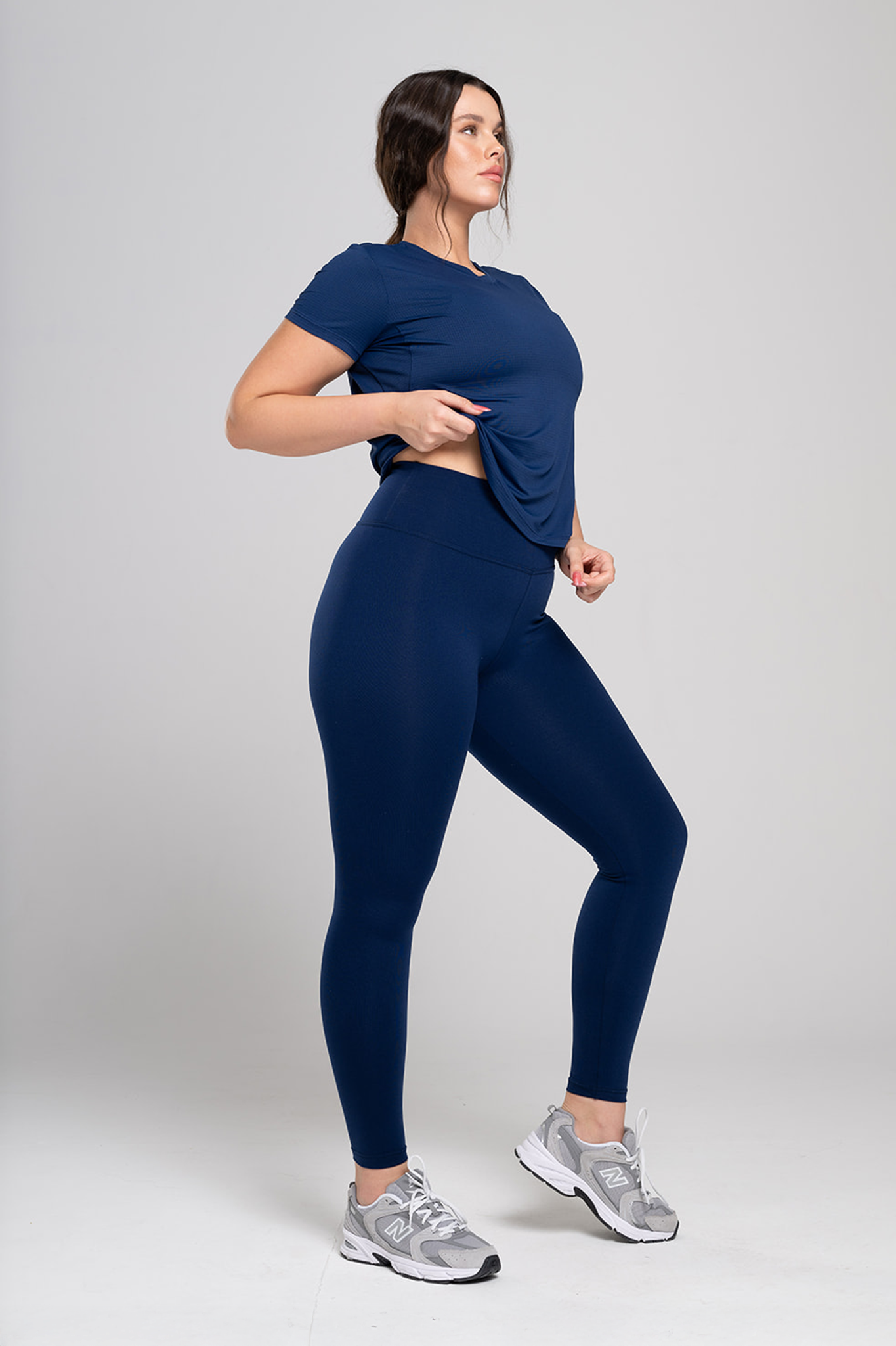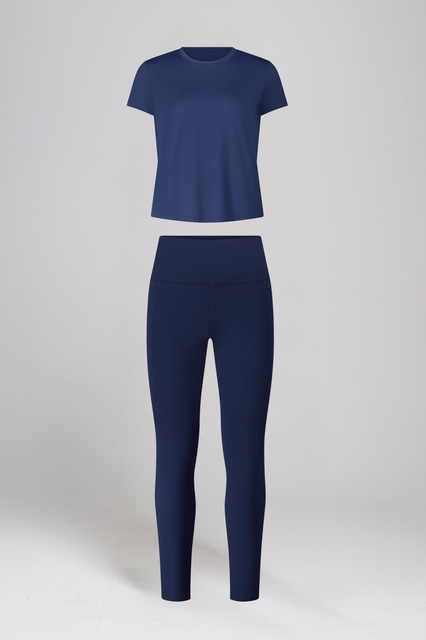 חולצה YALU קצרה + טייץ SOFTLEX ארוך גבוה - NAVY